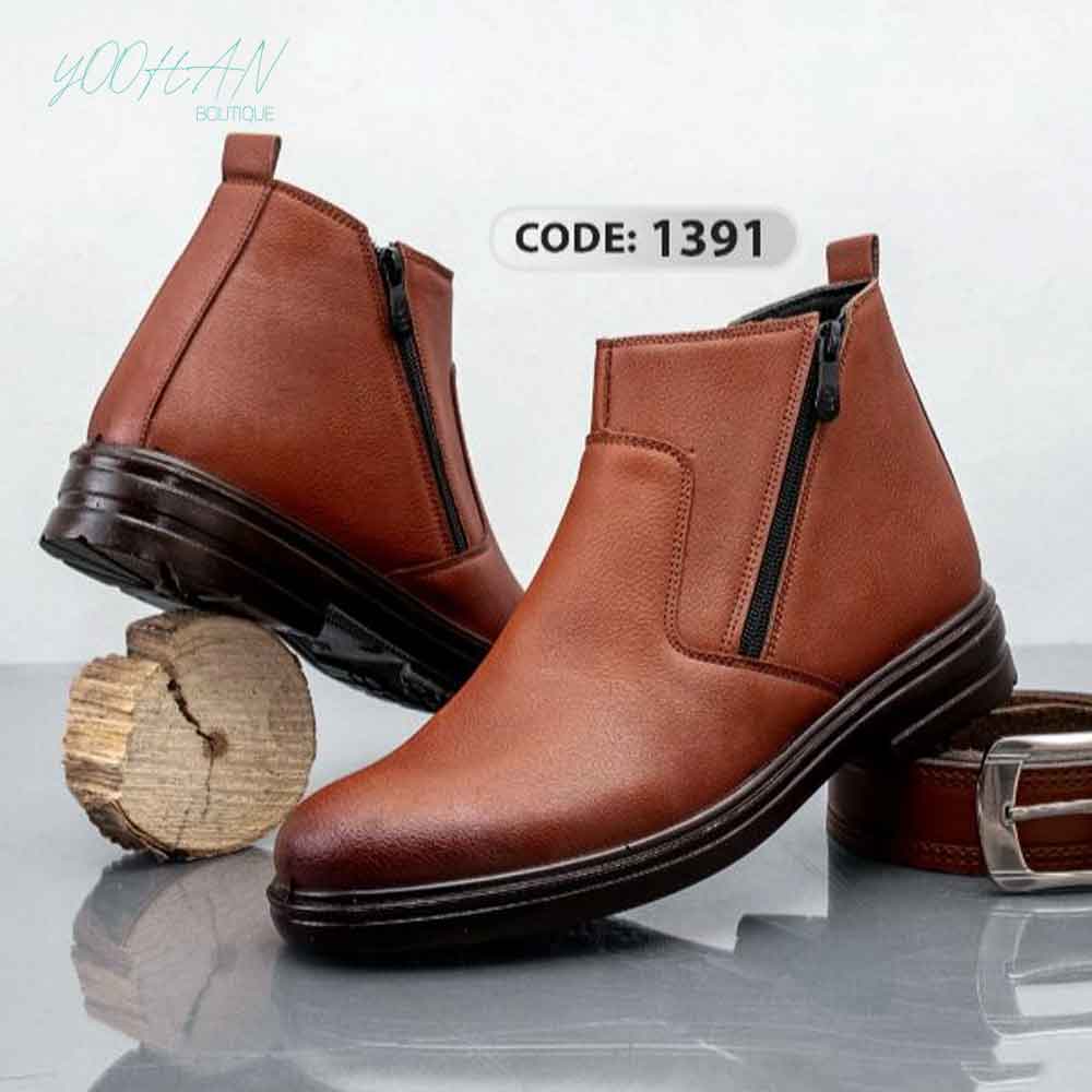 نیم بوت قهوه ای دوزیپ زیره قهوه ای سوخته پاشنه دار کد( ۱۳۹۱)