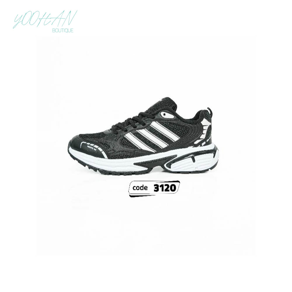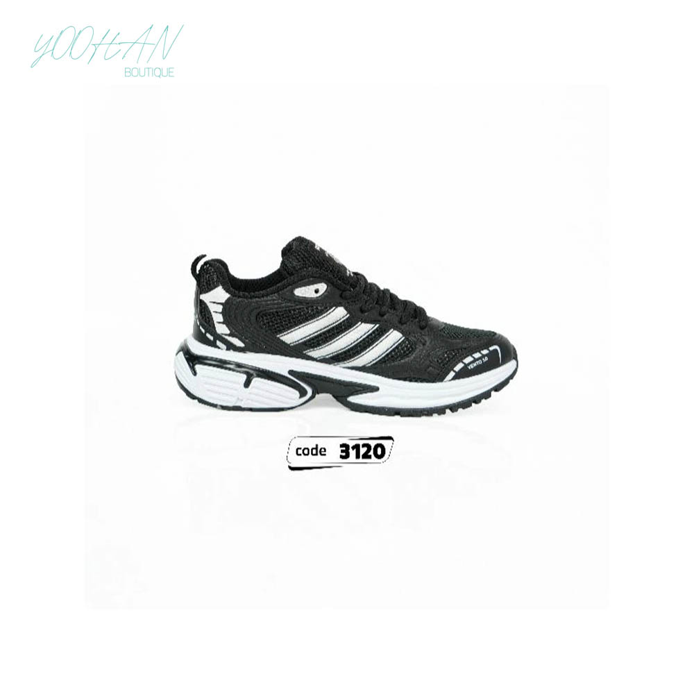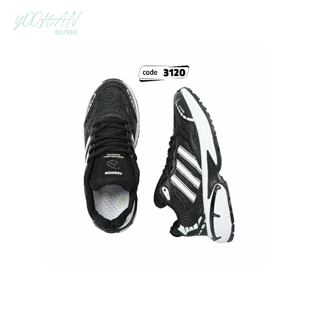 کتونی مشکی سه خط کرم زیره سفید مشکی کد ۳۱۲۰