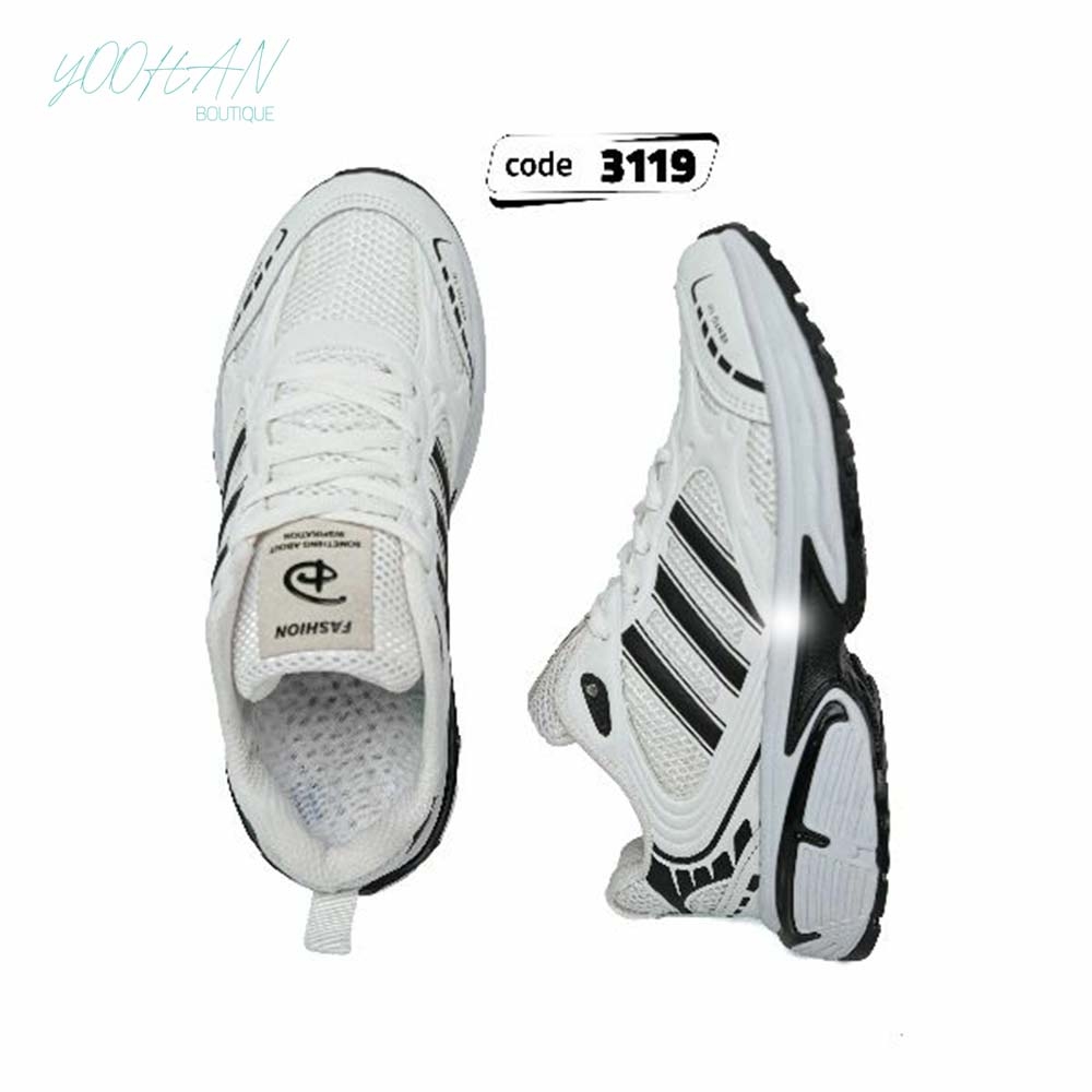 کتونی کرم سه خط مشکی زیره سفید کد (۳۱۱۹)