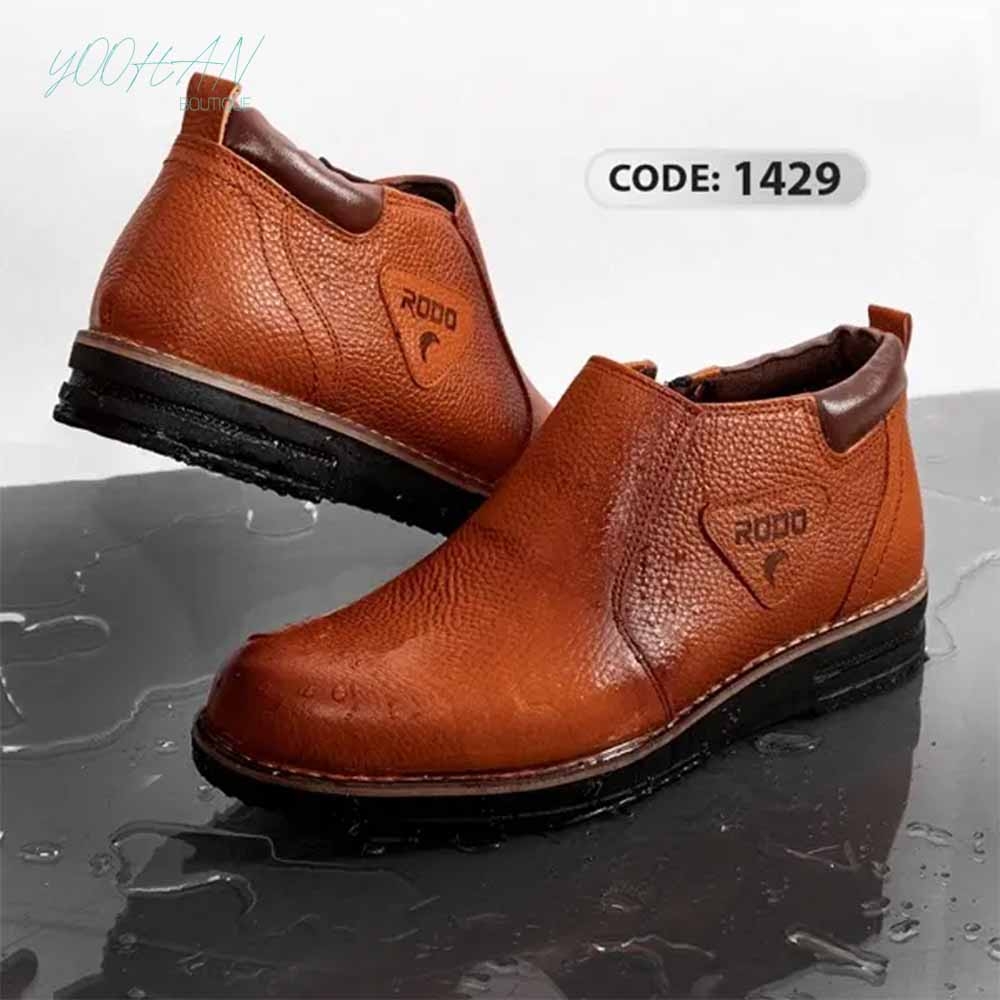 نیم بوت شارلوت چرم طبیعی عسلی زیره مشکی (کد ۱۴۲۹)