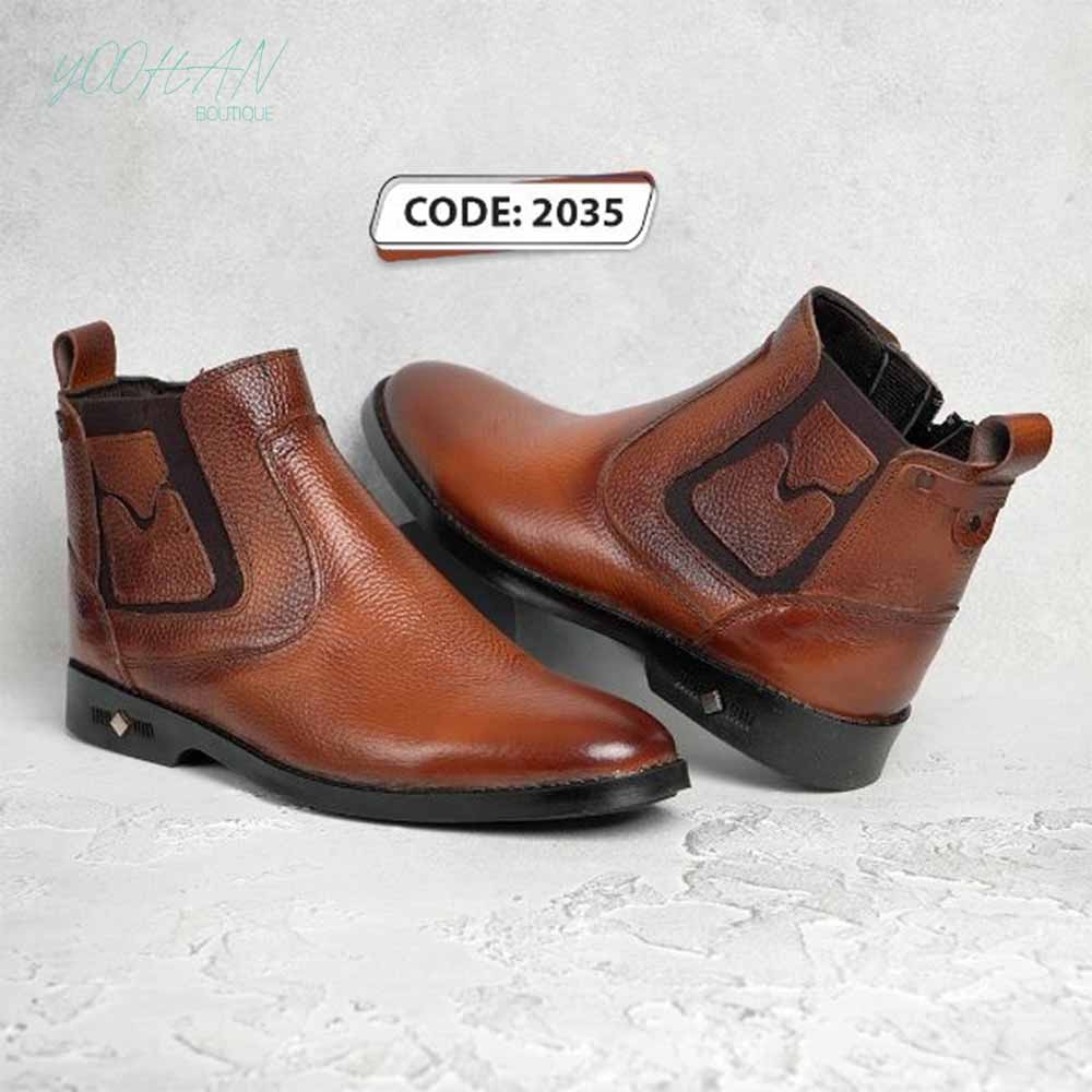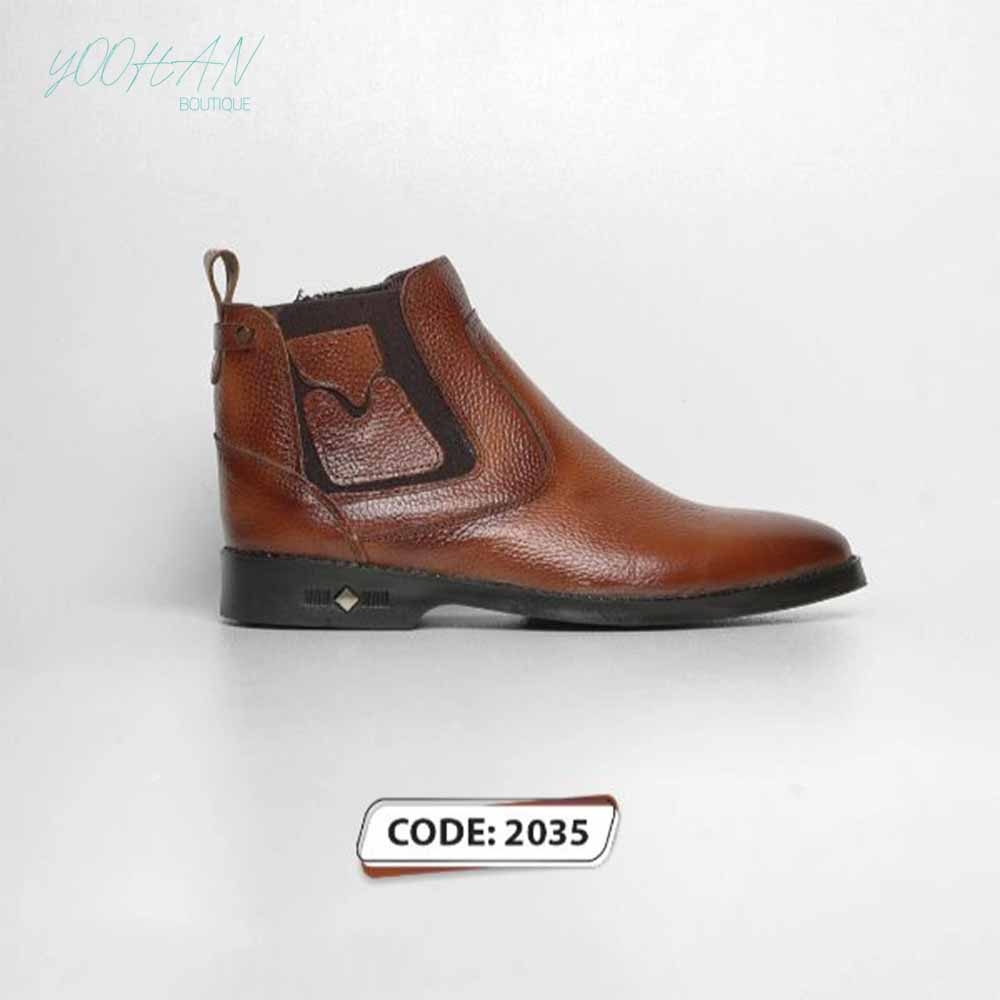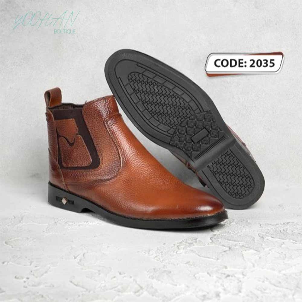 نیم بوت مردانه عسلی پاشنه دار و بغل زیبپ مناسب برای فصول سرد