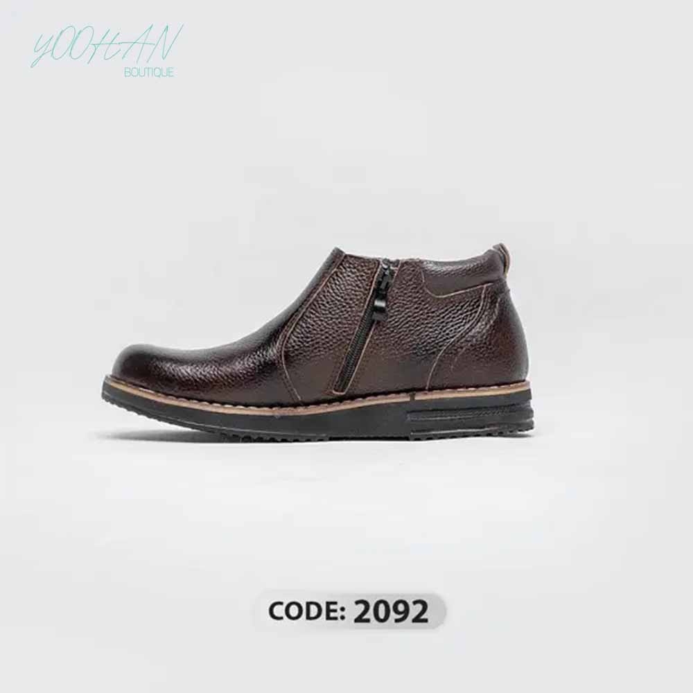 نیم بوت شارلوت چرم قهوه ای سوخته بغل زیپ دار (کد ۲۰۹2)