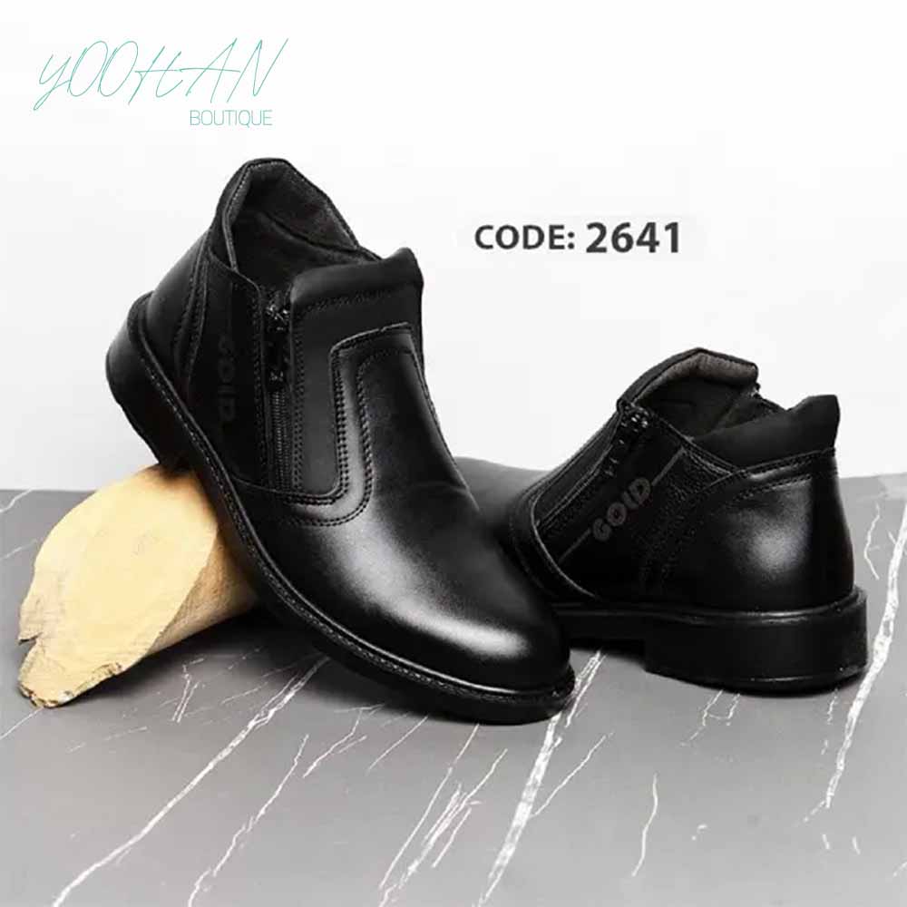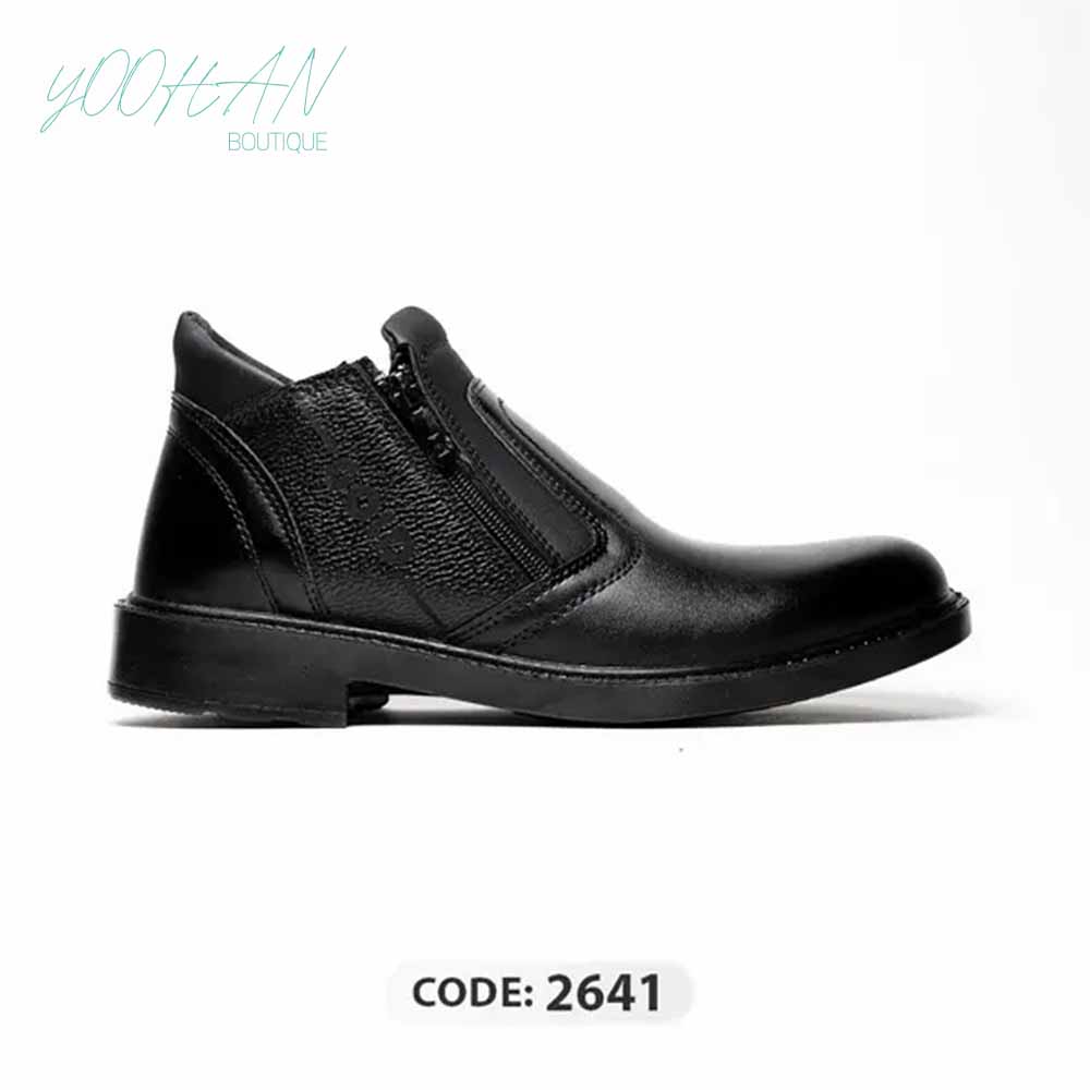نیم بوت چرم تمام مشکی دو زیپ (کد ۲۶۴۱)