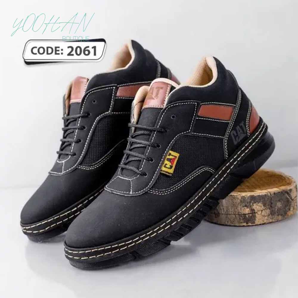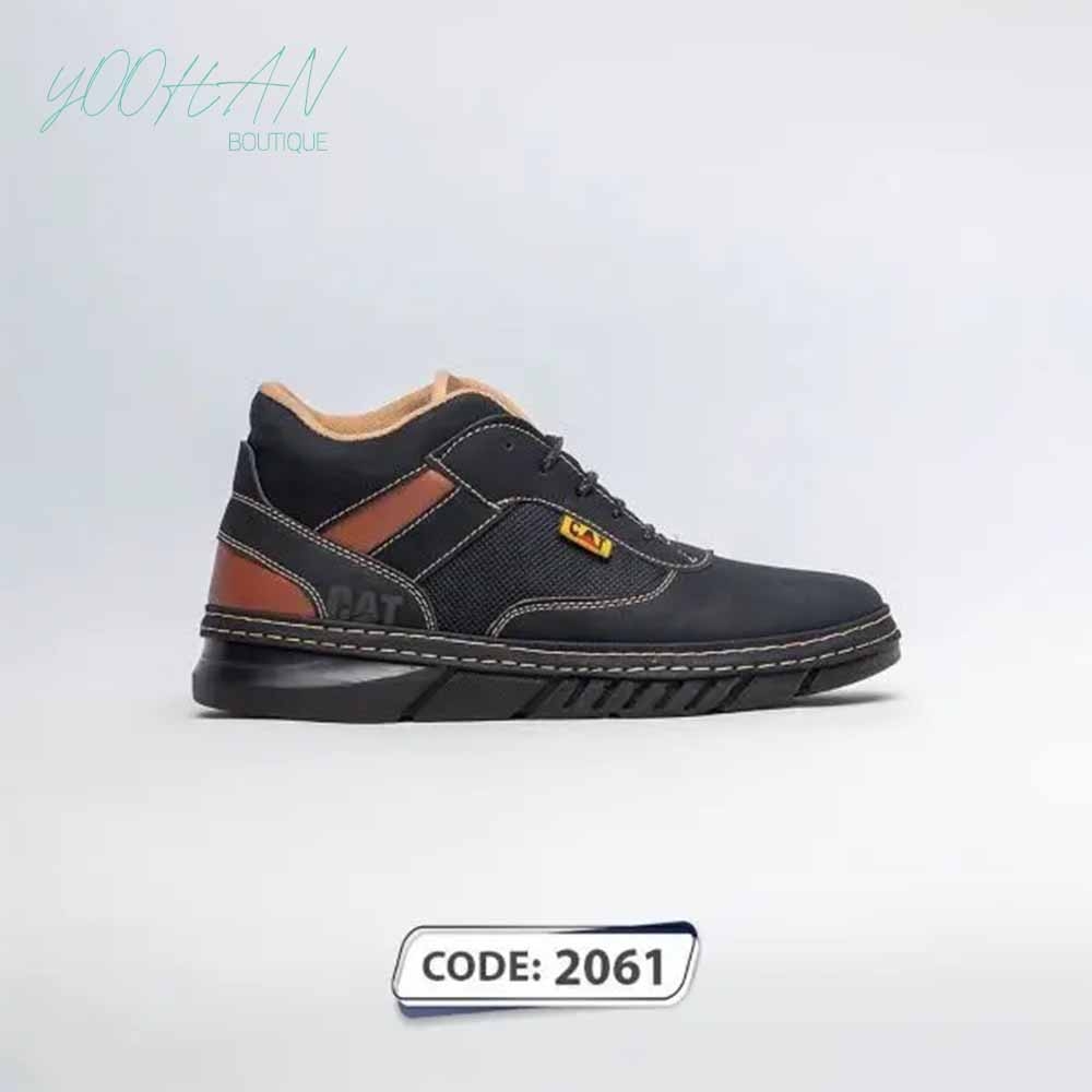 نیم بوت بنددار مشکی بغل عسلی دور دو دوخت Cat (کد۲۰۶۱)