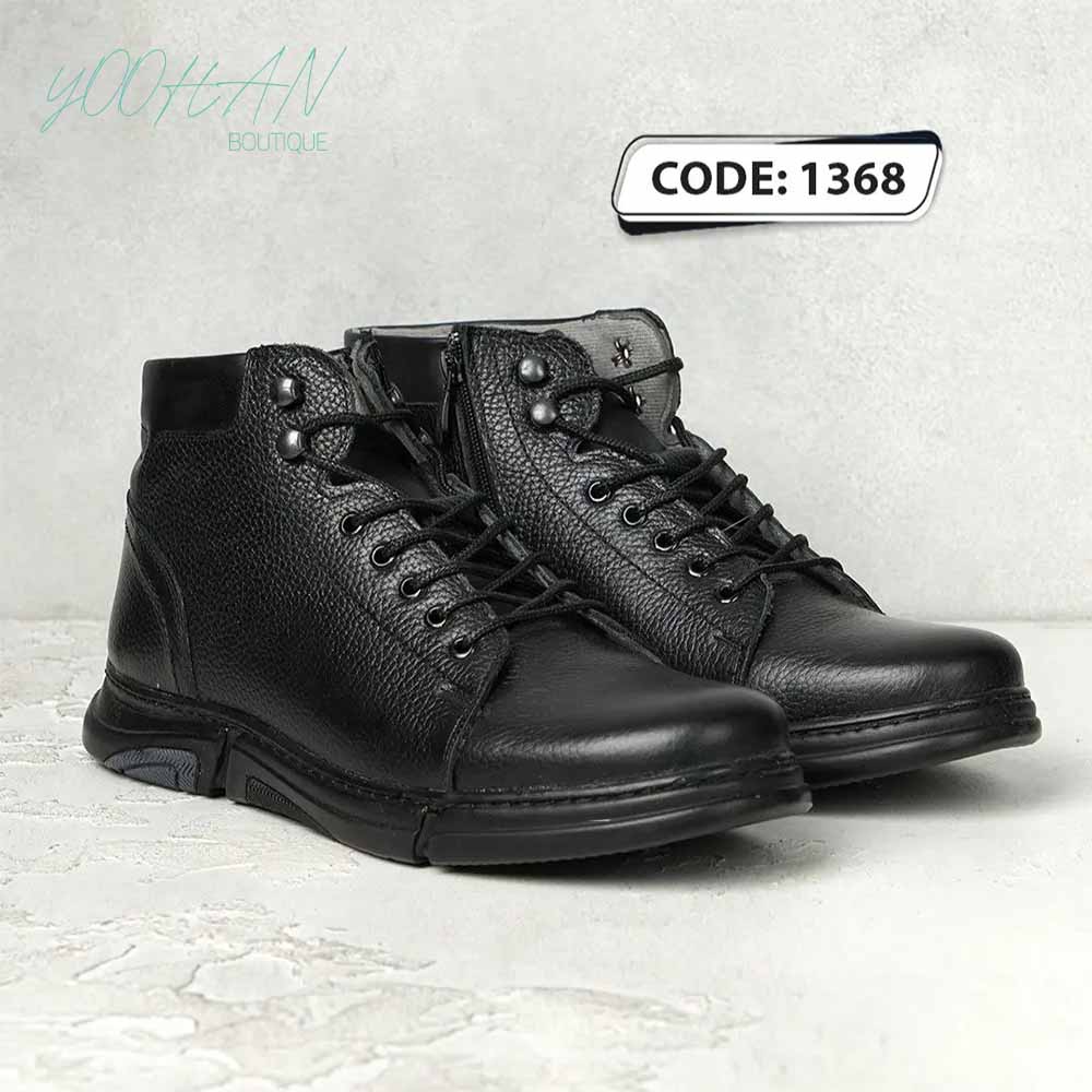 نیم بوت تمام مشکی زیره مشکی بغل زیپ( کد ۱۳۶۸)