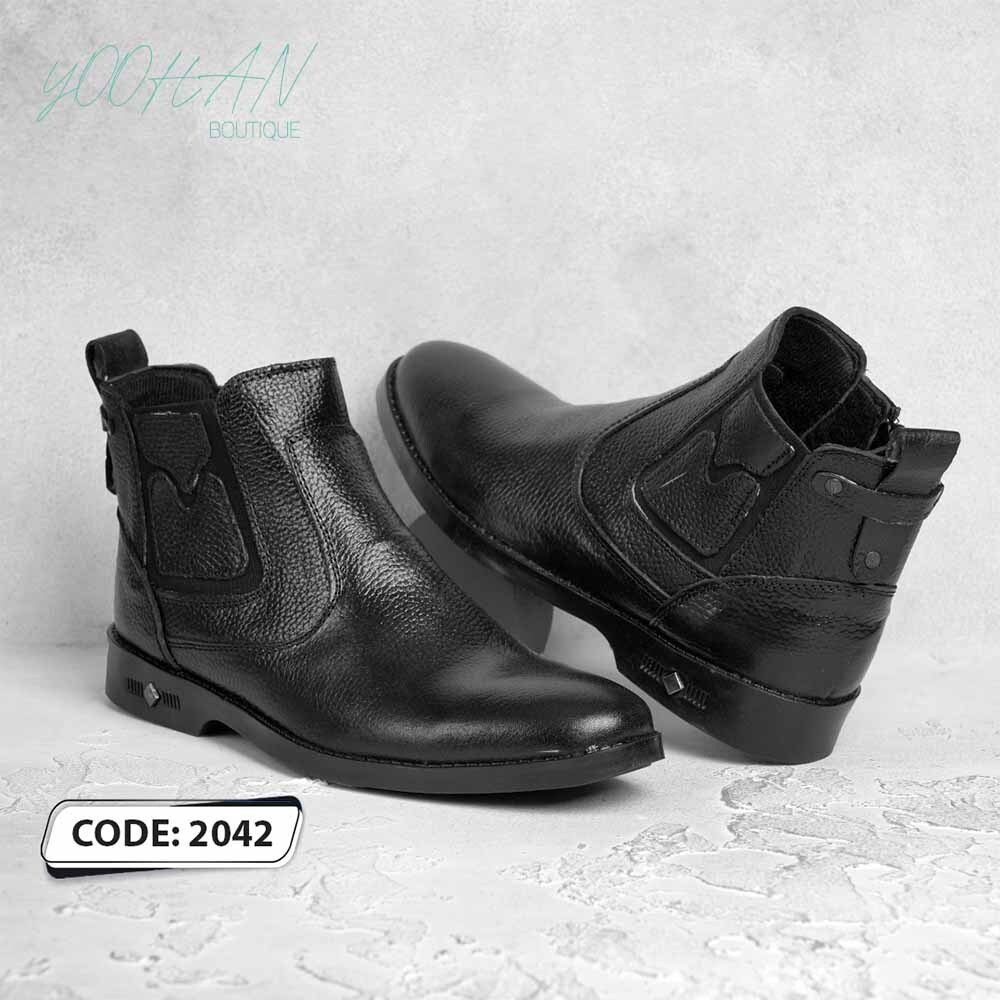 نیم بوت بدون بند تمام مشکی مارک فلزی ( کد ۲۰۴۲ )