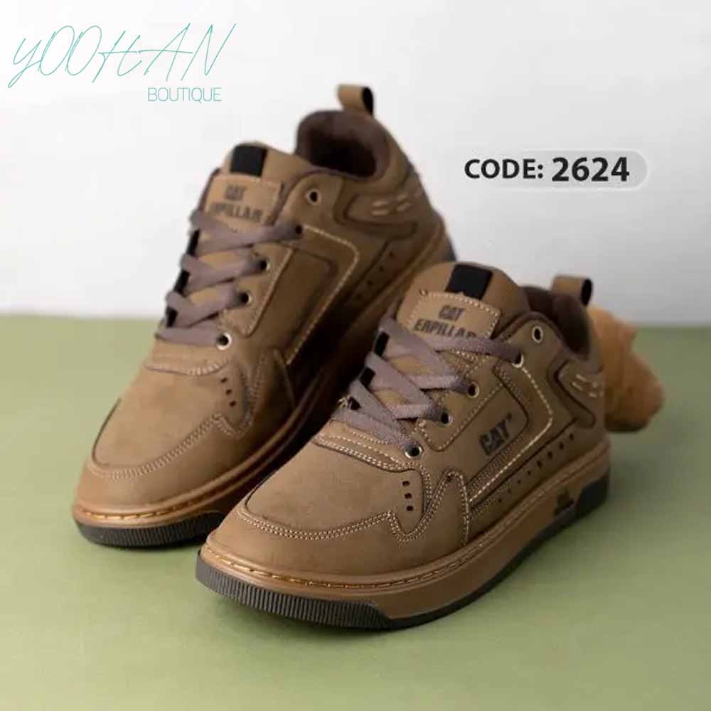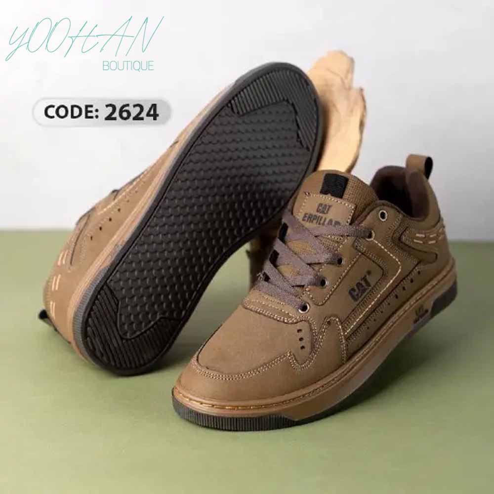 کتونی بنددار زیتونی دوخت طلایی CAT (کد۲۶۲۴)