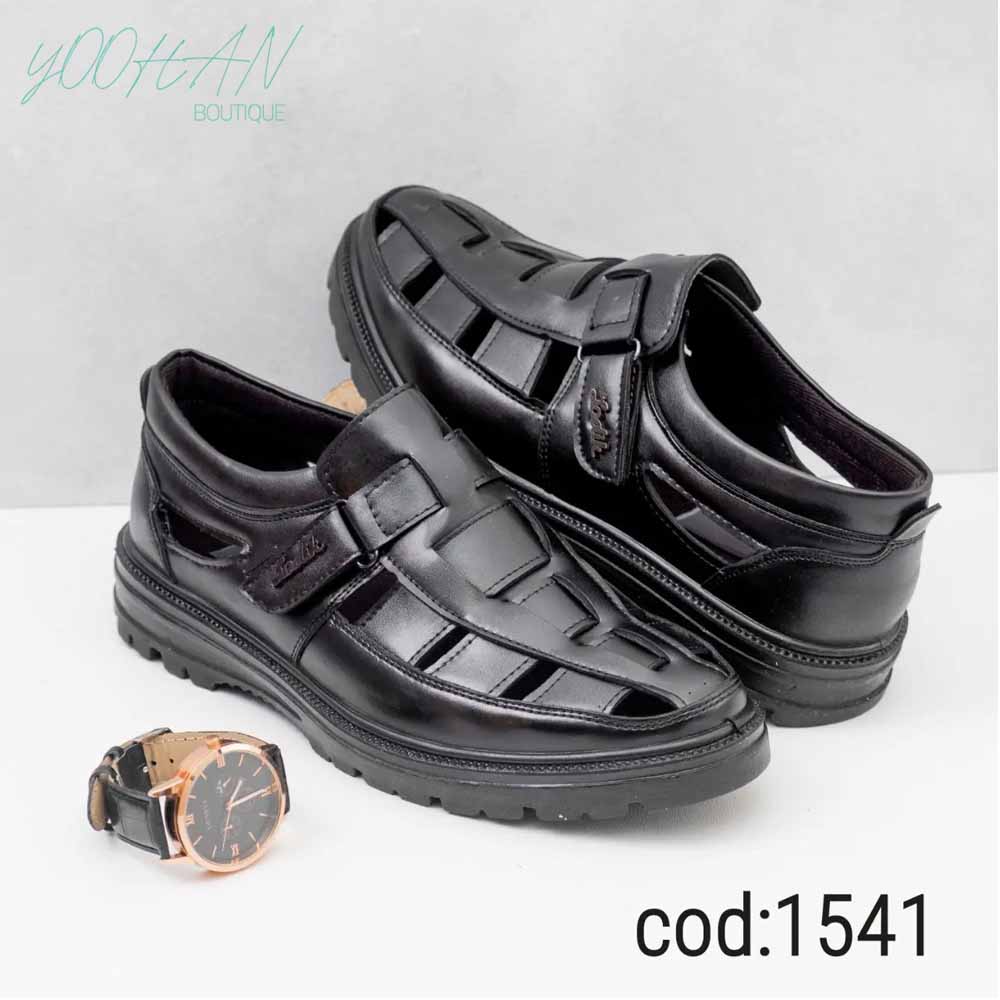 کفش تابستانه تمام مشکی رویه طرح دار (کد۱۵۴۱)
