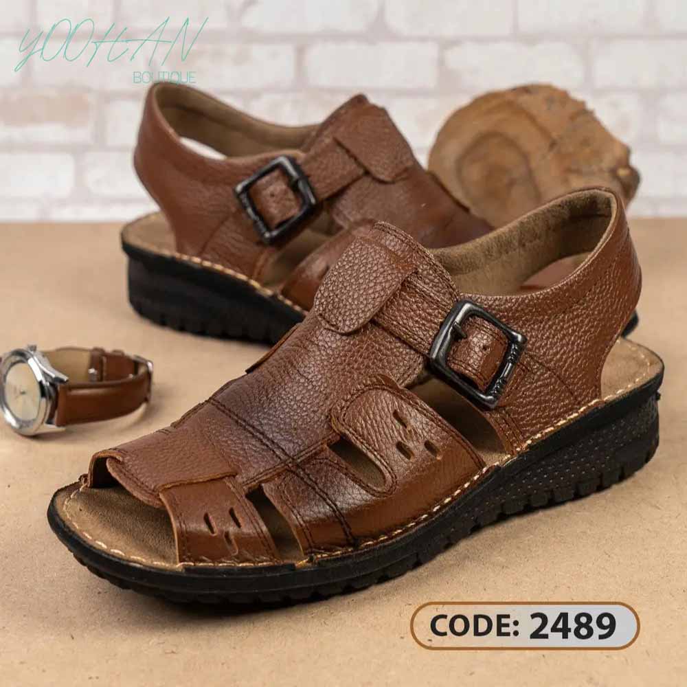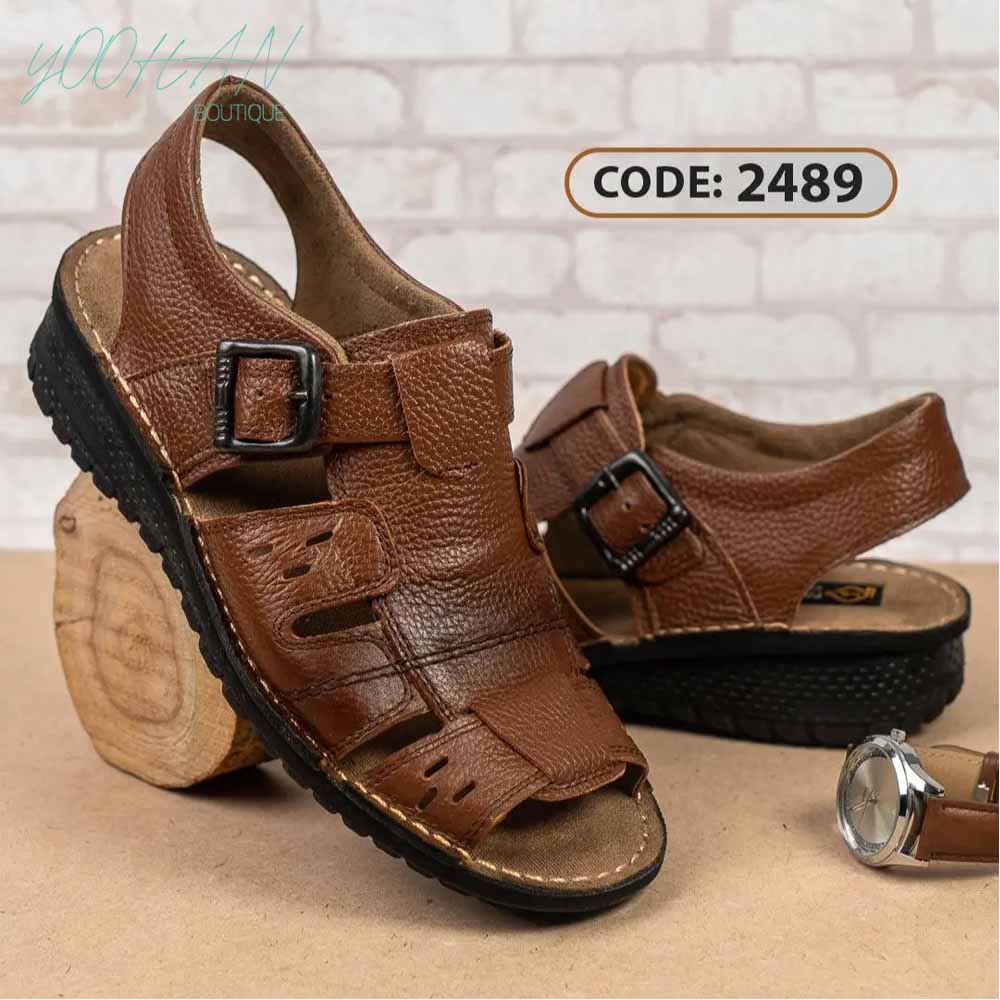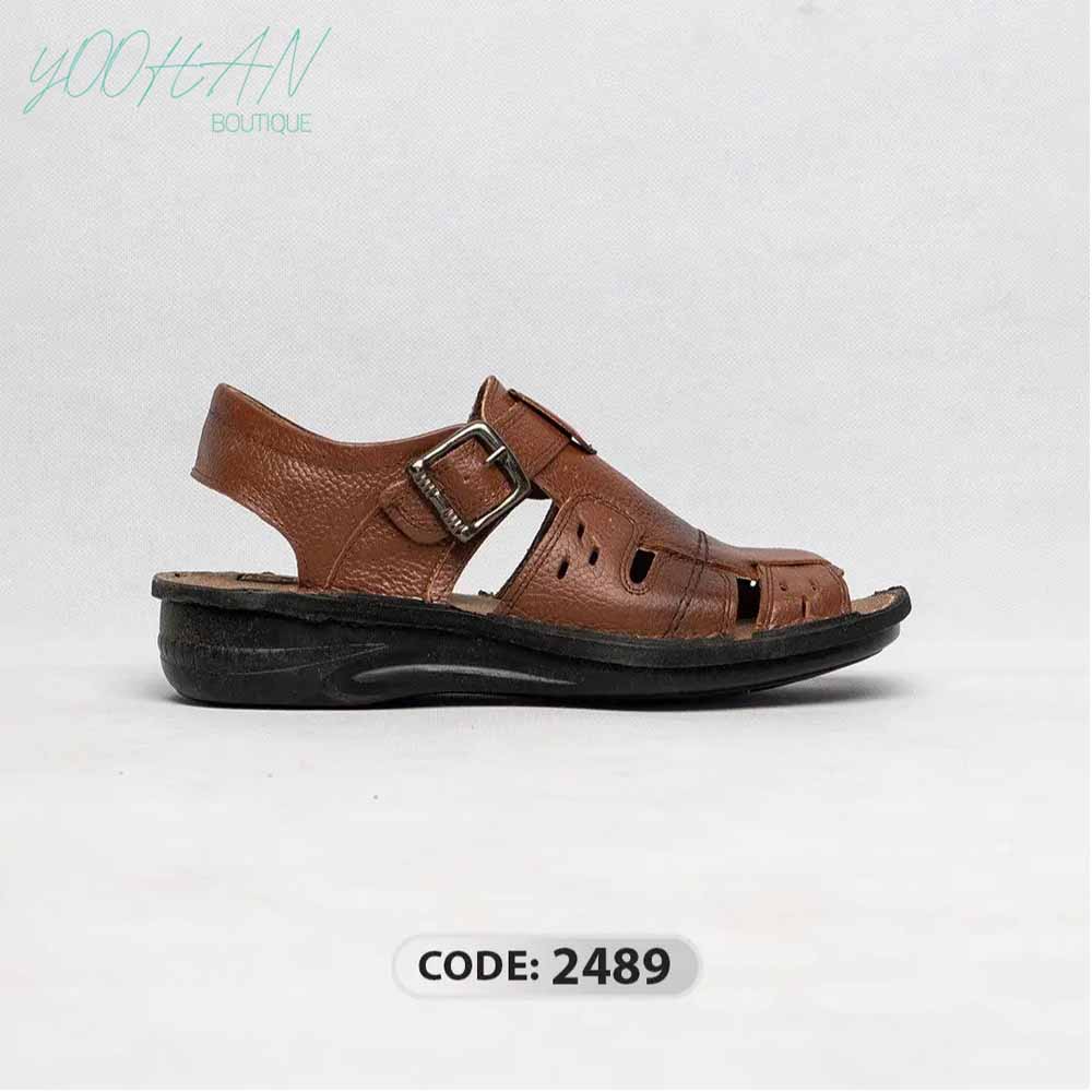 صندل قهوه ای روشن زیره مشکی سگگ دار (کد۲۴۸۹)