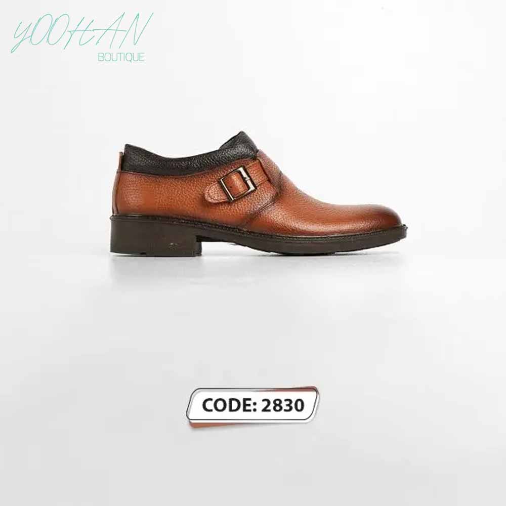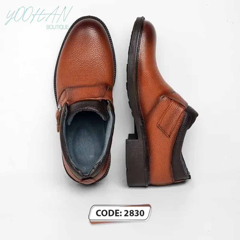 کفش ساق کوتاه پاشنه دار عسلی بغل سگک کد (۲۸۳۰)