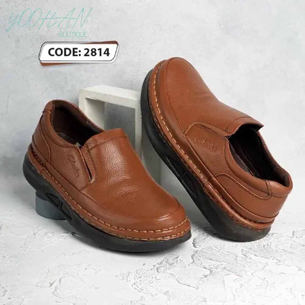 کفش چرم مردانه قهوه ای روشن کلارک زیره طرح مثلثی ۲۸۱۴