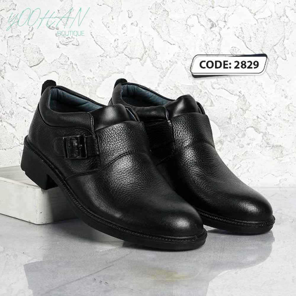 کفش ساق کوتاه پاشنه دار تمام مشکی بغل سگک( ۲۸۲۹)