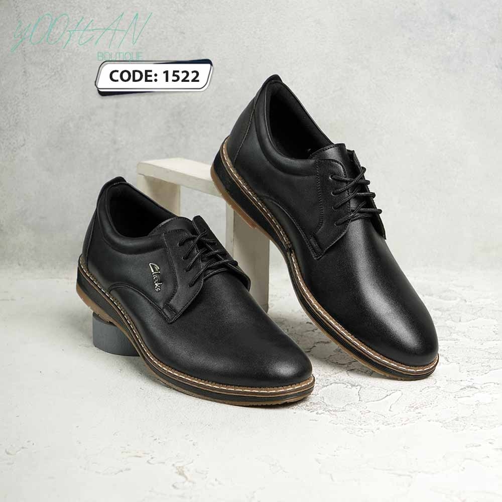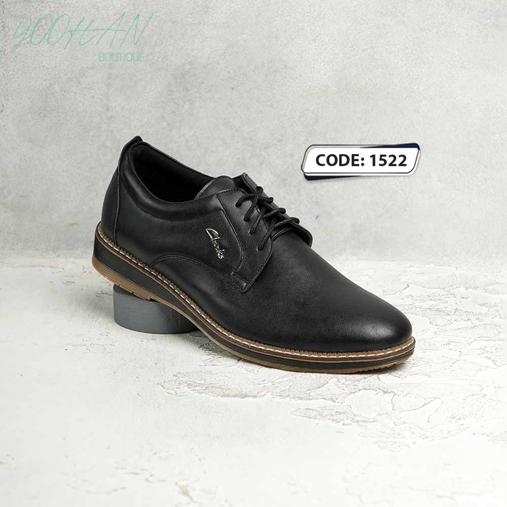 کفش مردانه بندی مشکی کلارک کفی مشکی کرم (کد۱۵۲۲)