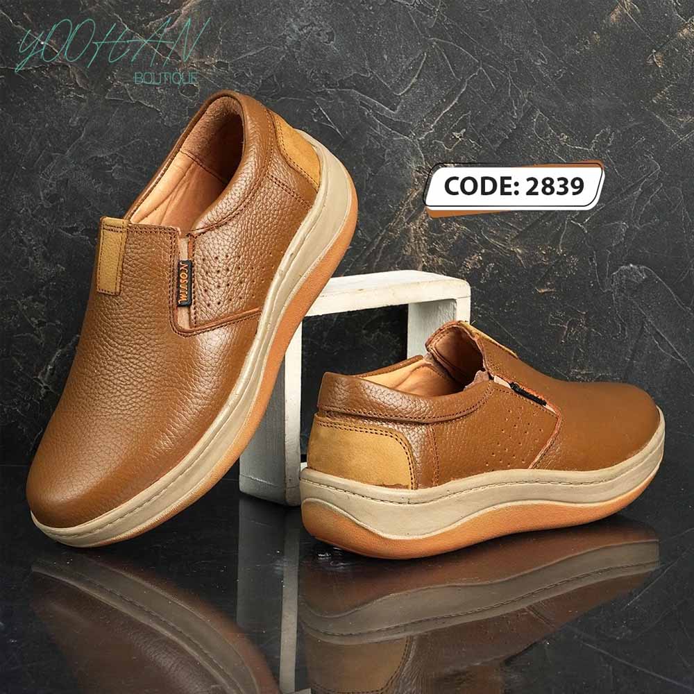 کفش چرم نسکافه ای زیره دورنگ کرم قهوه ای (۲۸۳۹)